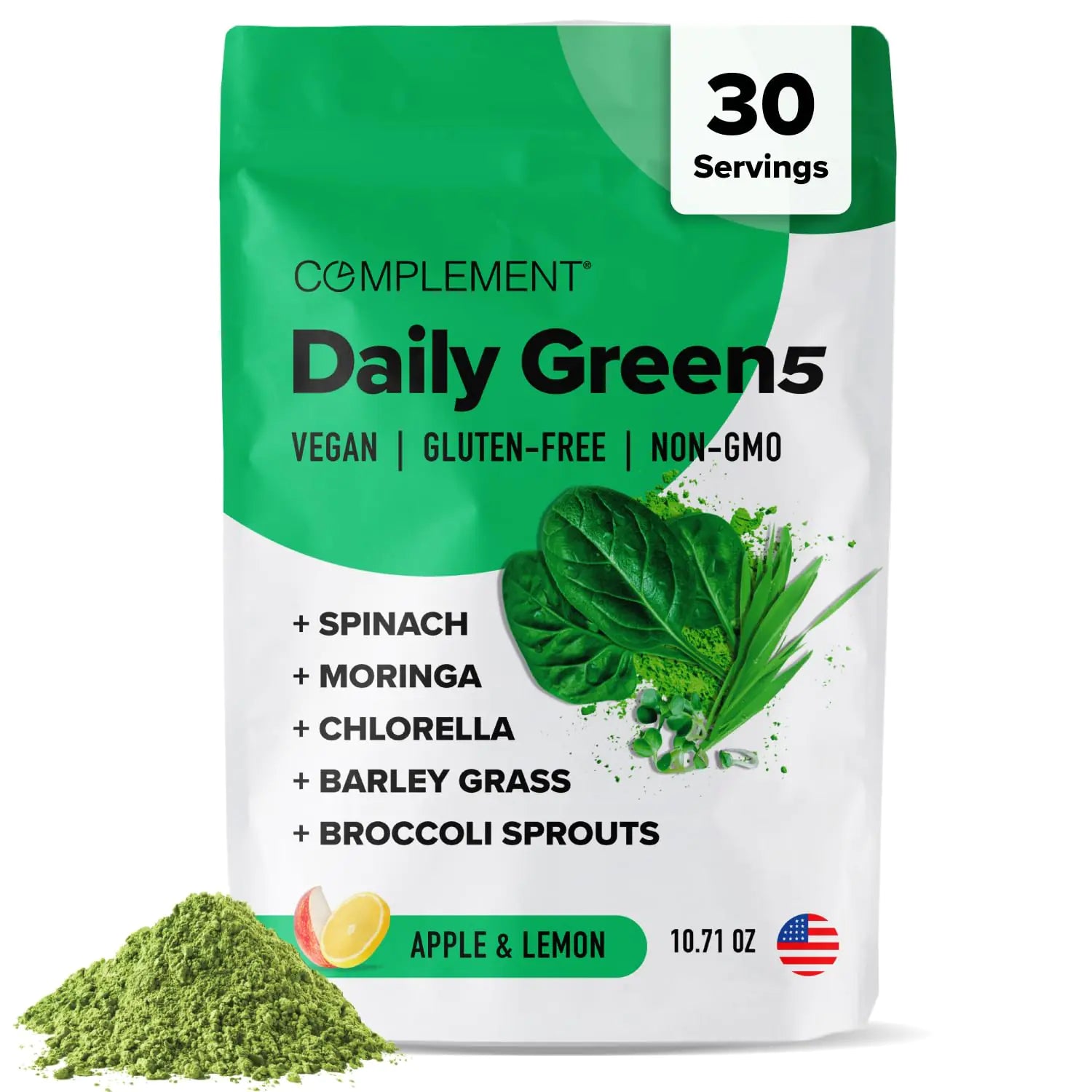 Complement Daily Greens Powder Super Greens Powder Superfood- Wholefoods Organic Chlorella Powder Barley Grass Juice Powder Broccoli Sprouts- Immune Support Brain Health Metal Detox- 30 Servings