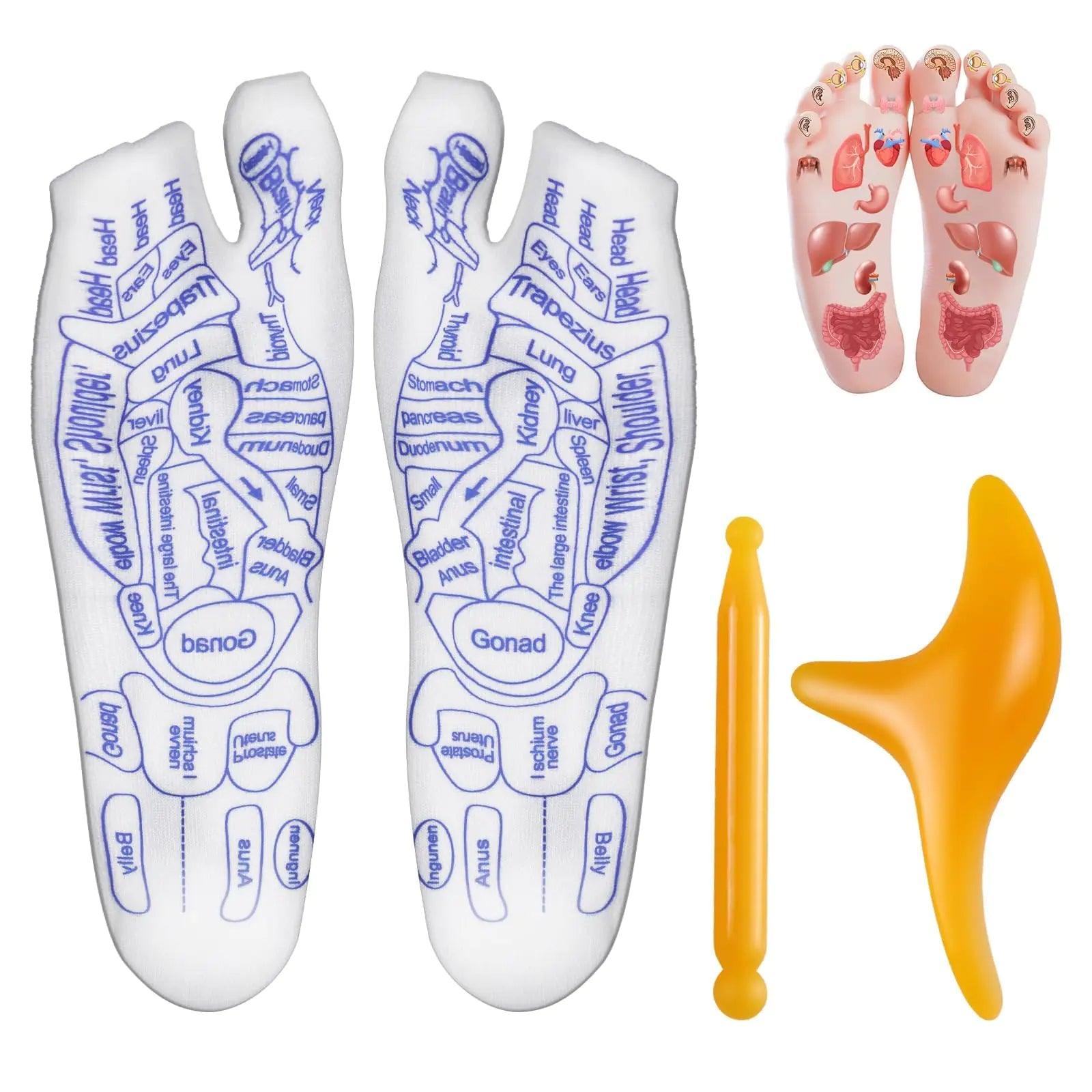 Specifications:Name: Reflexology socks Foot massage socksWeight: 35gMaterial: CottonPackage includes:1 pair * Reflexology socks Foot massage socks1 pc * Massage stick 11.3*1.2cm1 pc * Wing massager 11*6.2*3cmNotes:1.Please allow slight size differences due to manual measurement.2.Due to the color display of different monitors the color of the photo may be slightly different from the actual product.